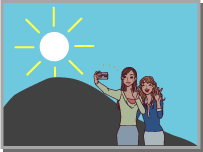 らせることにより、被写体がきれいに写ります。特に背景が山など遠い景色をバックに記念写真を撮る場合に効果的です。最初にお話した、富士山をバックに記念写真を撮ったら被写体はきれいに撮れたけど、富士山が消えちゃったということは無くなるでしょう。太陽の光の強さはフラッシュの光の強さよりかなり強いです。そこでフラッシュを使って被写体に当る光の強さを調整してあげるということです。また、お子さんなどを綺麗に撮りたい場合などでもフラッシュを使うことにより被写体を浮かび上がらせます。誰もが経験あると思いますが観光地などで記念写真を撮るときに、写真屋さんは必ず天気が良いのにフラッシュを使っていると思います。